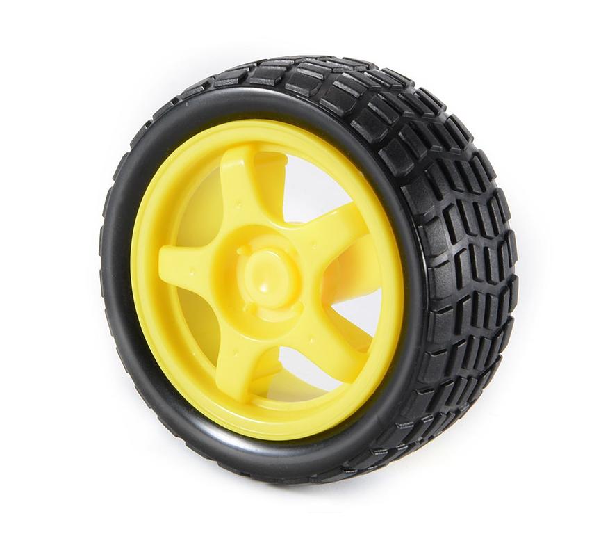 The rear wheels came with the motor kit shown above from Radio Shack, but they are basically just plastic wheels with rubber tires that press onto the Solarbotics gear motors output shafts. If you wanted to get some wheels that mount to the Solarbotics motors, you can find some here for just over $3.
